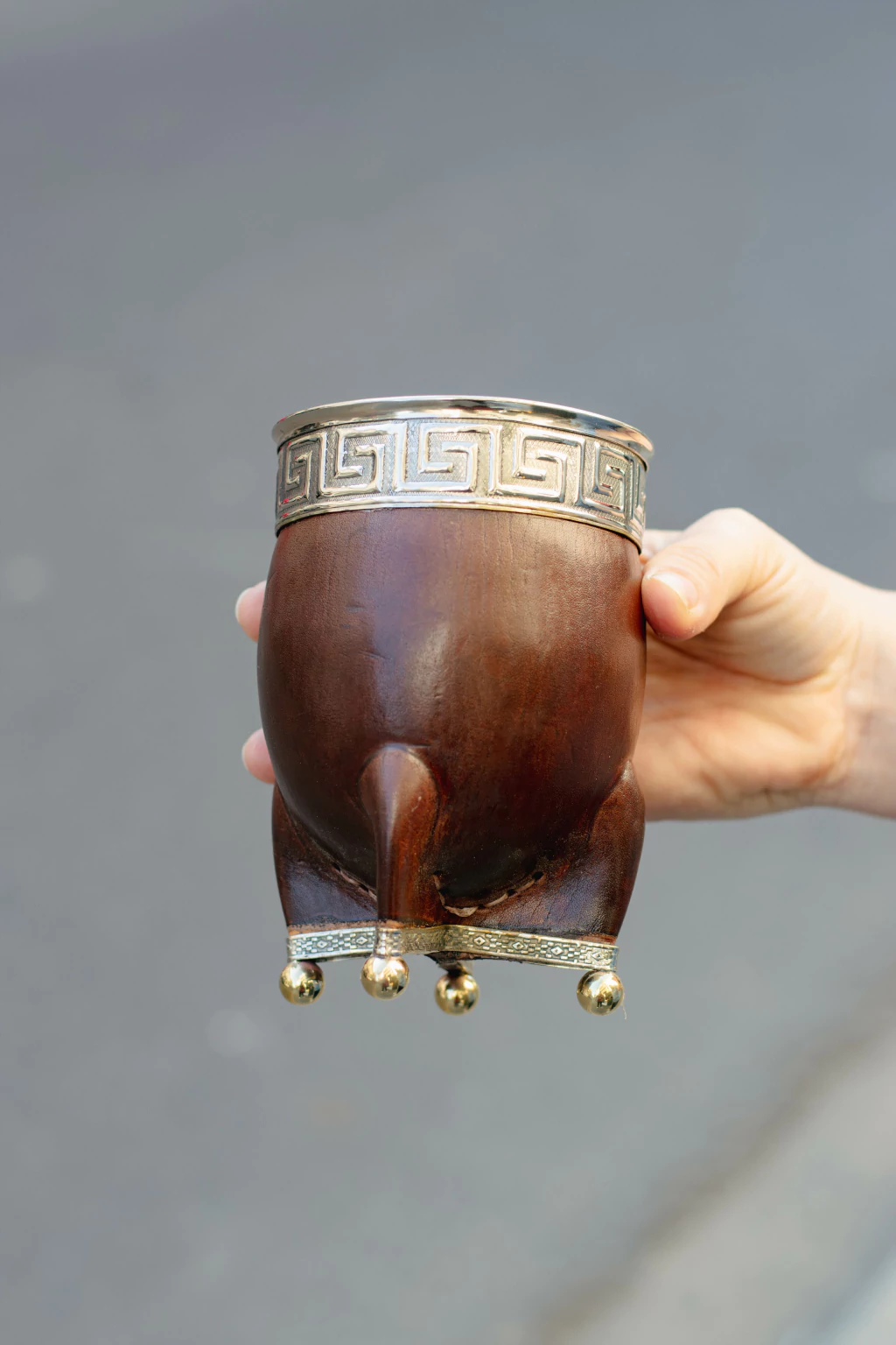 Base de alpaca y bolitas en bronce.
